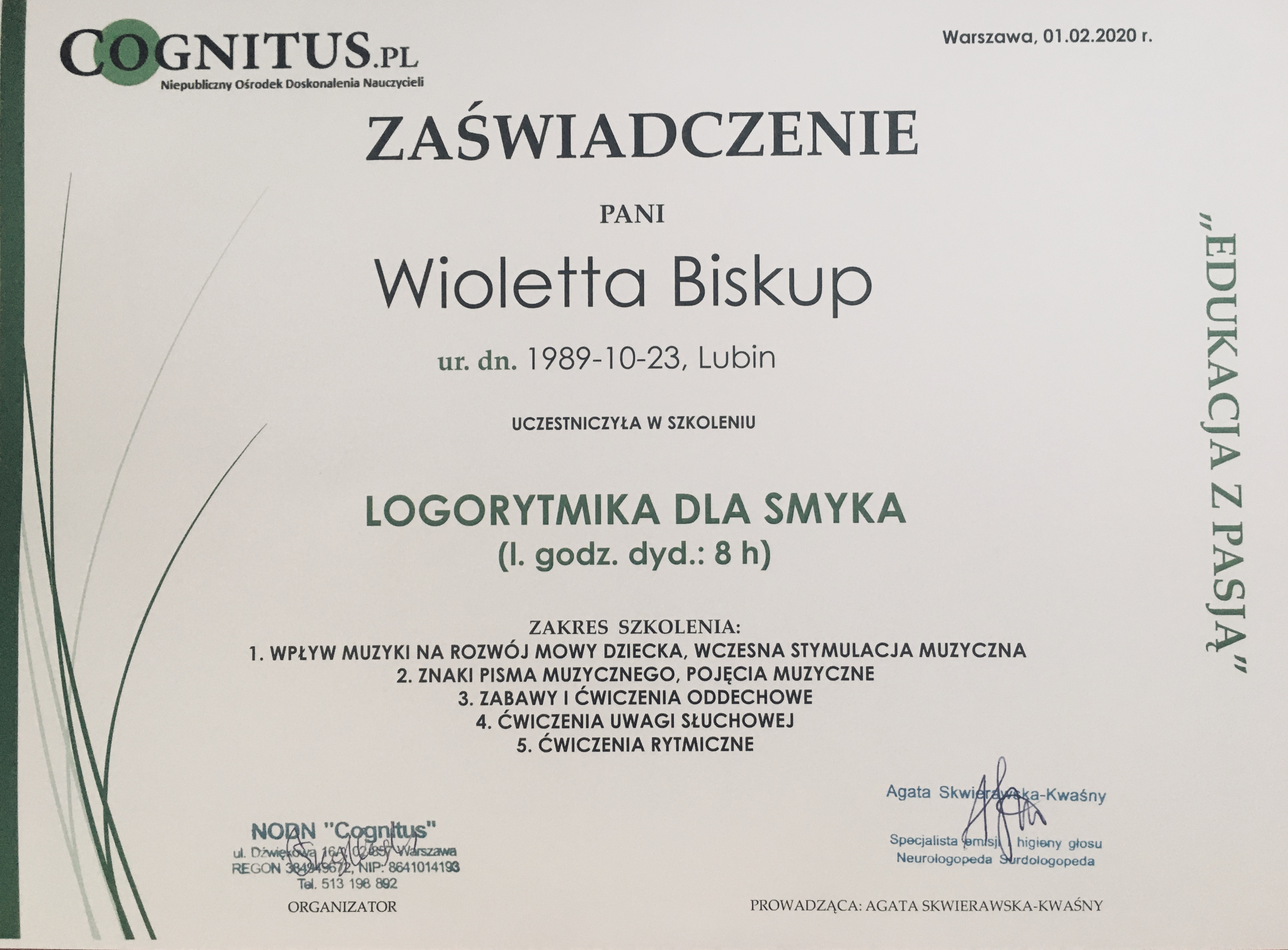 - 2017 Warszaty rytmiczne dla dzieci w żłobkach oraz przedszkolach.